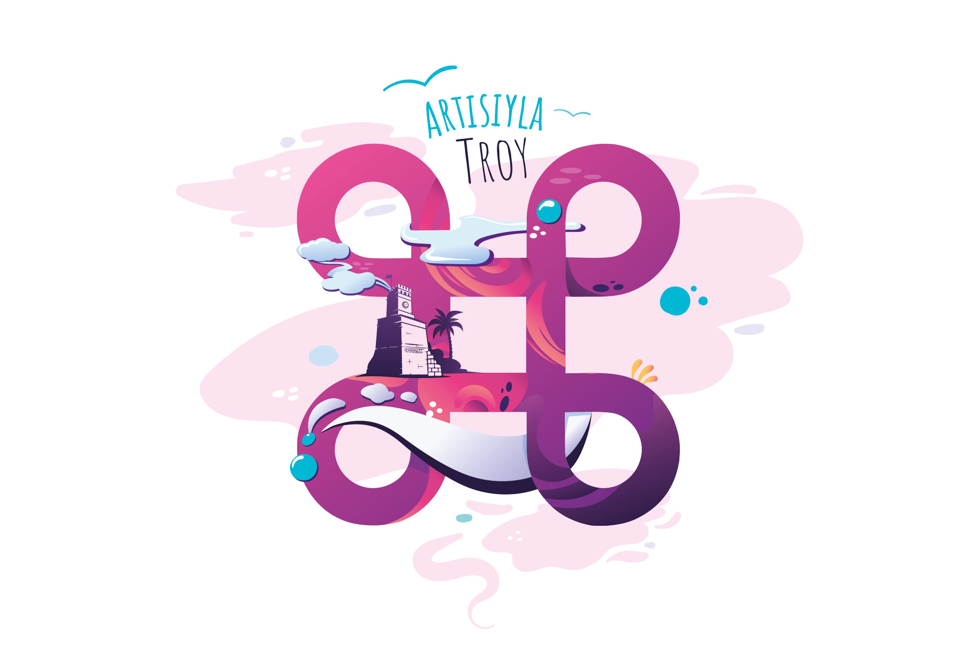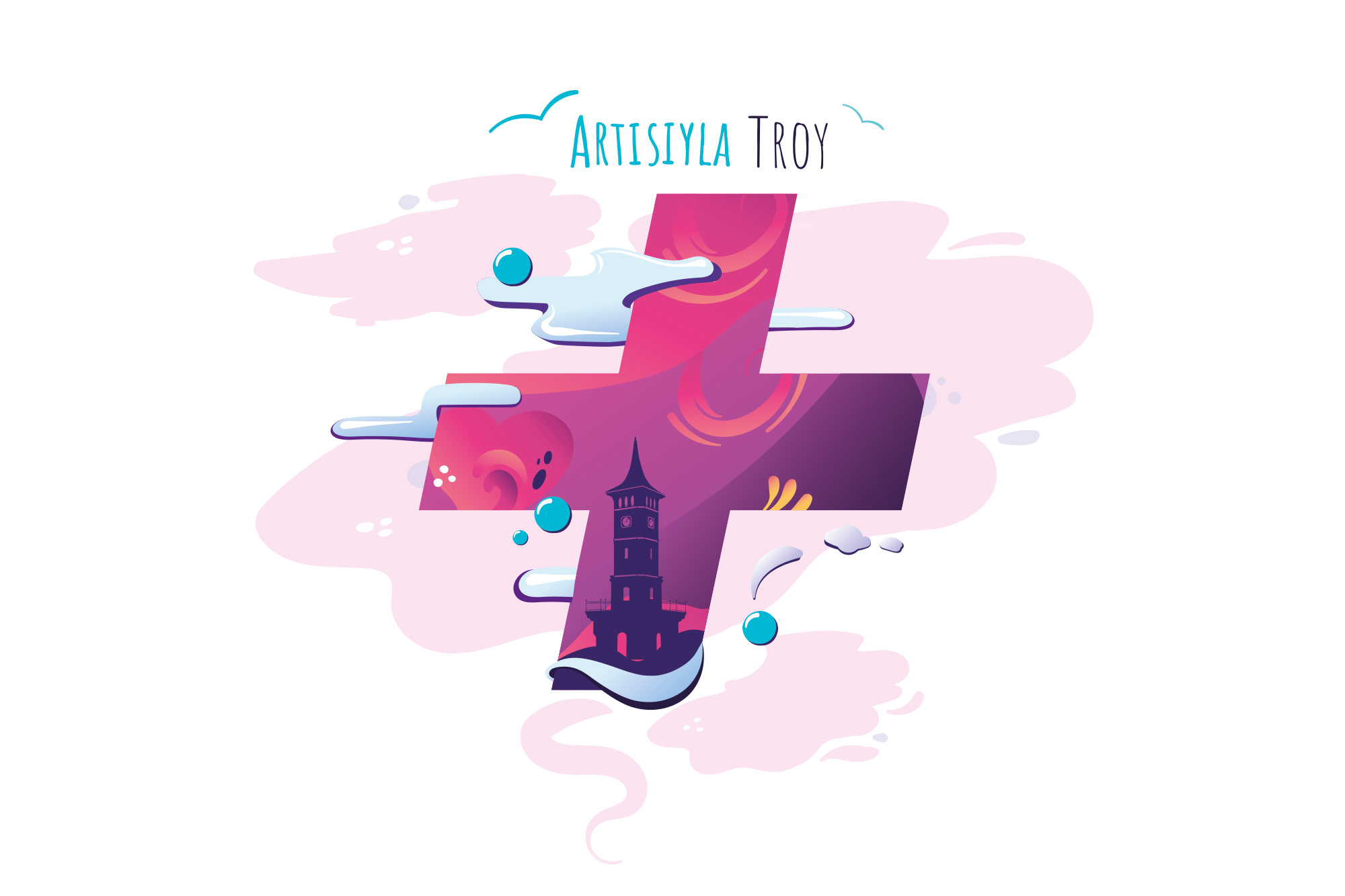 Artısıyla Troy campaign illustration and branding. For the campaign, four different illustrations were made for the four cities where Troy stores are located. Each work was paired with icons representing the Apple brand.