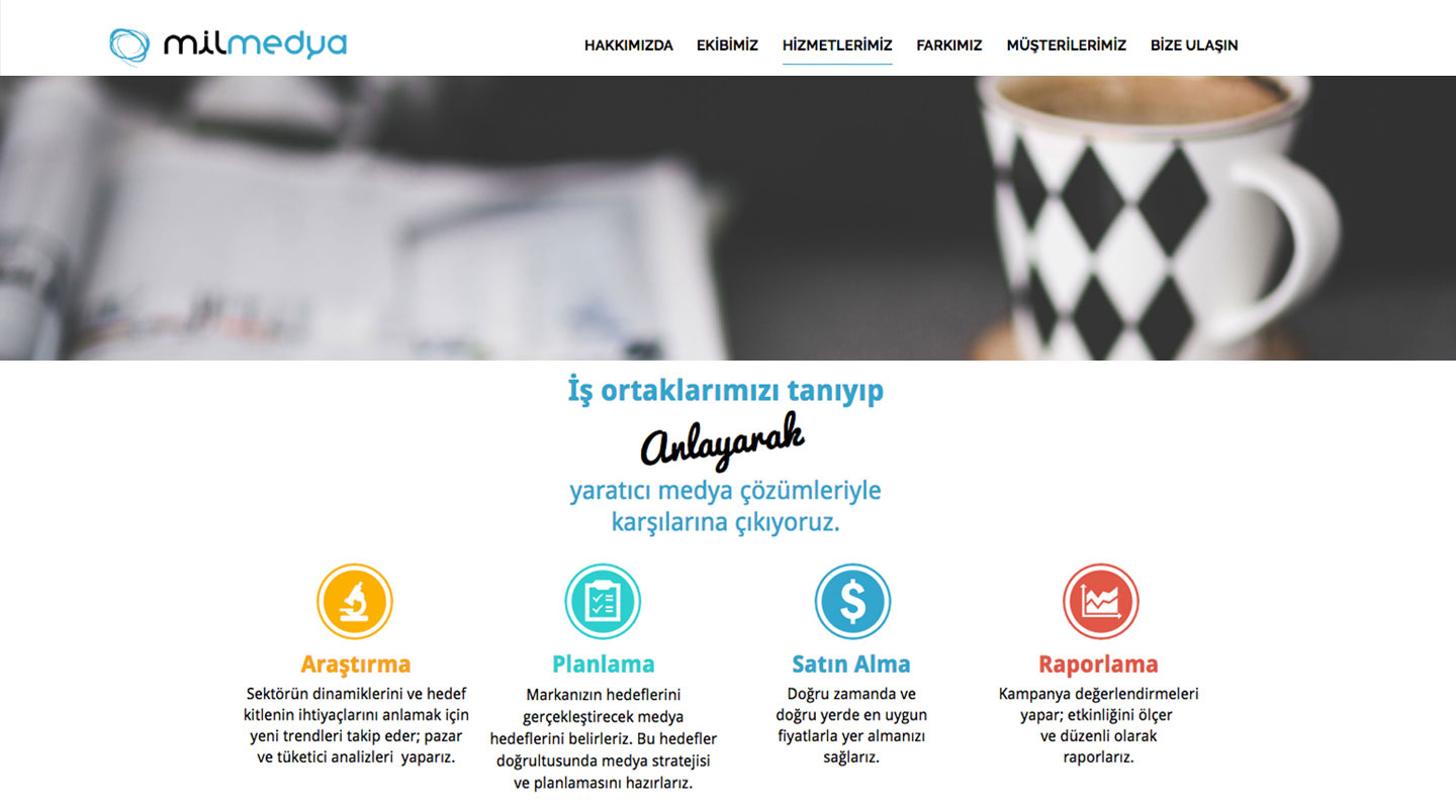 Milmedya kurumsal websitesi tasarım, uygulama ve mobil arayüz. Milmedya.com.tr